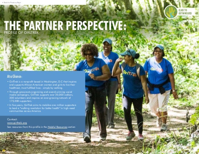 worked with black women,” says Gary G. Bennett, a professor at Duke University and a leading researcher on obesity. “One of the key predictors of positive treatment outcomes is really high levels of engagement. I’ve been doing work on obesity as it affects medically vulnerable populations for 15 years, and I don’t know of anything in the scientific community or any public health campaigns that have been able to produce and sustain engagement around physical activity for black women like GirlTrek does. Not even close.”